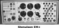 One of the first manufacturers to offer a commercial version of the EMEM, that is still available today, was Bruce Stenulson. Stenulson improved the design and called it an EM+ system. Due to the characteristics of the original circuit it is necessary to change patch cables around when running different frequency ranges and the frequency is generally limited to 10 KHz or below, but one benefit of the device is that since it does not use RF, the tube can be held. This may increase effects and certainly increases the sensation of using it. It can be cranked up to a high enough output that it is quite noticeable. Later editions of the Stenulson EMEM allow function generator input so it is no longer necessary to use the knob-based analog square wave generator.