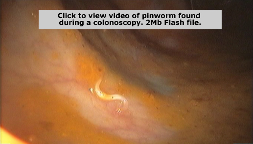 Comments on video of pinworm seen during colonoscopy: This 52 year old woman was referred for |