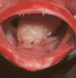 Parasites are organisms that live on or within another organism, called the “host.” Most fish species are susceptible to worm infestations but a few species, particularly those in sharks and fishes in the grouper, amberjack, and drum families, appear to be more susceptible to them. Larger, older fish can acquire many parasites over the course of their lives. Though they appear to be very intrusive, parasites rarely cause health complications for the fish. Although most commonly seen by anglers in the muscle, parasitic worms can live in every organ. For example the ovary of this grouper is inhabited by large, red nematodes or “roundworms.” In general, parasite density and diversity can be good indicators of the overall health of a marine environment. Fish possessing a high diversity of species of parasites in relatively low abundances are commonly found in healthy marine systems. Also see the article Fish and Parasites |