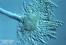 Notes from Biology 103, Section "Microbes and You", Chapter "The Fungus Among Us." Fungi Fungi are eukaryotic organisms with a nucleus and organelles and are more closely related to animals than to bacteria. Fungi often make spores that are very resilient and resistant to disinfectants. Microscopic fungi are very small although they may form colonies large enough to be seen unaided. Microscopic fungi include molds and yeasts. Yeasts are round cells that reproduce by budding. Molds are filamentous cells that often form hyphae (strings of cells). The cells in hyphae are often non-septate, having no cell walls between cell. Macroscopic fungi include mushrooms, puffballs, and gill fungi. These have a complex life cycle that may include sexual reproduction Role in nature In the environment, fungi are critical to the breakdown and decay of biological materials. Fungi can eat almost anything - the detritus or leftovers from decay are foods for fungi. ln a compost pile, heterotrophic bacteria eat the 'tasty' parts of the organic debris but the less digestible portions of the rotting material, like the lignin in wood, is degraded by fungi. The decay process is critical for returning nutrients and minerals to the soil. Another important environmental role of fungi is their association with plants. Mycorrhizal fungi live in the soil on the surface of or within plant roots. Most plants have mycorrhizal fungi associated with their roots. These fungi have a large surface area and help in the transport of mineral nutrients and water to the plants. The plants provide fixed carbon compounds to the fungi as their contribution to this symbiotic relationship Human pathogens Fungal infections of humans are called mycoses. There are really three classes: cutaneous non-invasive, subcutaneous, and systemic. Cutaneous non-invasive mycoses attack the non-living portion of skin tissue. The outer layer of skin is mainly dead cells, keratin, sebaceous (sweat) solids. The fungi colonize the skin and eat the keratin and other dead cell materials. Tineas and Ringworm diseases are caused by organisms like Trichophyton, Microspurum, and Epidermophyton. Tineas are transmissible via human-human, animal-human, and soil-human contact. The tineas grow in circles where the edges are red and scaly, thus the term ringworms. Tinea pedis - athlete's foot grows in the moist dark areas between the toes. When it spreads to the toenails (tinea unguium) it can be very difficult to get rid of. Tinea cruris - jock itch grows in the male groin area - again a warm moist dark environment. Tinea capitis - found on the scalp, generally in children leading to hair loss. Tinea manum is on the hand and tinea barbae (barber's itch) under the beard. Some infections are opportunistic and arise when the immune system is damaged by illness, transplant surgery or age. Candida causes candidiasis, often found in the mouth and called thrush. Thrush is common in infants and AIDS patients and can infect the blood and be lethal. Candida is also the causative agent of vaginal "yeast infections". Cryptococcus is found in bird droppings and can infect skin abrasions and the respiratory tract. It can cause fever, move to the brain or bones and in some cases cause death. Aspergillus is the most common fungus in the environment and very pervasive in soil. In immunocomprimised people it can infect the lungs causing necrosis (death) of lung tissue. The ensuing pneumonia can be fatal and the fungi can infect the brain, heart and other organs. Systemic infections Histoplasmosis - Ohio Valley Fever - some 80-90% of people in the Ohio Valley region show signs of previous infection with histoplasmosis. It may be the causative agent of the "mummy's curse" from Tut's tomb. There are 500,000 cases annually in the US, thousands hospitalized and some deaths. The histoplasma fungi are common in soil and bird guano (droppings). The fungal cells can grow within phagocytes and thus evade the immune response. Symptoms can be mild fungal flus to severe diseases that can infect many organs. Coccidioidomyces - San Joaquin Valley Fever - a soil fungus that can produce cold-like respiratory disease. It can also grow in the lung and lead to rapid, explosive and deadly infections. Blastomyces - Chicago disease - often found in decaying wood and abandoned buildings. Can produce flu symptoms, but can lead to abscesses in the lung. Often it is seen as a chronic skin infection that erodes the skin surface. When the infection is systemic and in the blood, it can lead to death. Subcutaneous infections Suncutaneour infections are below the skin surface. Sporotrichosis - Rose-gardener's disease - commonly transmitted by a prick from a rose thorn. Basketweavers are also at risk. The disease can spread from the skin infection to the lymph nodes. Mycetoma - complex disfiguring syndrome - often contracted through a small injury by a thorn, leaf edge or wood sliver. Leads to local abscesses in the skin. This can spread to the bones and muscles. Often the disease is insidious and difficult to cure. Positive fungi Many fungi are beneficial to man, in addition to their environmental roles. Antibiotics like penicillin and cephalosporin are fungal products. Fungi are used in the production of beer, wine, blue cheese, soy sauce, bread and other food products. Fungi are used to produce commercial products like specific alcohols, organic acids, and vitamins. Plant pathogens Many fungi are harmful to plants and must be controlled in agricultural settings. Powdery mildews are obligate parasites that grow on roses, squashes, and cucumber leaves. The powdery mildews cannot be cultured in the laboratory unless grown on plant leaves. Study is difficult and few good fungicides exist for use in agriculture. Smut on corn is caused by Ustilago and can be very harmful to corn crops. Rice blast disease is caused by Pyricularia and can affect leaves or stems. Rice is a major staple crop worldwide and rice blast destroys