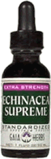 Echinacea should be used in high dose as soon as possible at the onset of an acute illness. Echinacea helps stop viruses from spreading by increasing the resistance of cells to virus penetration. It should be taken at triple recommended as soon as possible for the first day of the regimen. This would be 3 to 5g of the root or tops of a high quality product. For echinacea extracts, use 3 to 5 times the recommended serving size. Herb Pharm makes a good liquid echinacea extract, but the best is Gaia Echinacea Supreme Extra Strength. A warning regarding this Gaia product. One of the hallmarks of a good echinacea extract product is it temporarily numbs the tongue. A few drops of Gaia Echinacea Supreme Extra Strength taken straight can numb the entire throat, making it feel constricted and uncomfortable. Use it with care until one is used to this sensation, or mix it with a good deal of water before use.