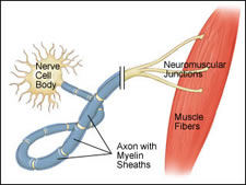 Multiple Sclerosis or MS, is a chronic degenerative disease of the central nervous system in which gradual destruction of myelin occurs in patches throughout the brain or spinal cord (or both), interfering with the nerve pathways and causing muscular weakness, loss of coordination and speech and visual disturbances. It occurs chiefly in young adults.