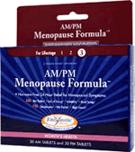 Enzymatic Therapy AM/PM Menopause Formula. Comes in two parts - one for the morning, which contains herbs which help energy levels including ginseng and green tea, along with black cohosh, and a PM formula which is used in the evening or before bed since it contains relaxing herbs such as hops, kava, and valerian, along with black cohosh. AM-PM is an excellent product.